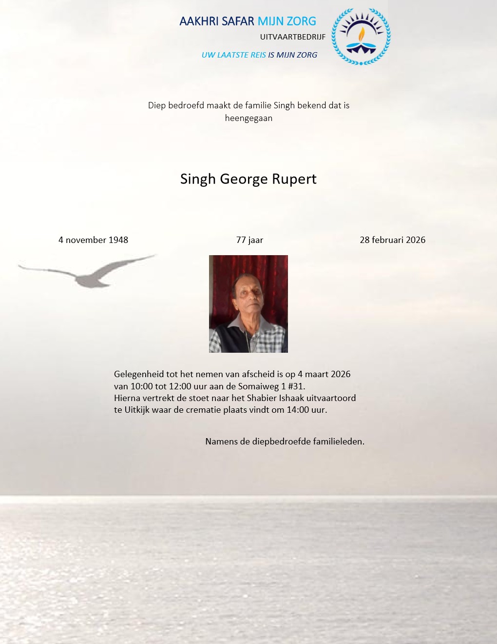 Singh George Rupert 28/02/2026 740 About Aakhri Safar Mijn Zorg Related Posts Persaud Mahilall Rudie Dewnarain Bipat